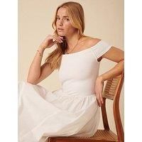 Nobodys Child Bardot Midi Dress Size & Fit True to size - order your usual size Regular fit Midi length Available in sizes 6 - 16 Details Bardot Midi Dress by Nobodys Child White Off-the-shoulder style Side pockets A-line skirt that skims the body Designed to be semi-fitted - Manufacturers part number: WFUSY