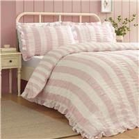Effortlessly fresh and full of charm, this bedlinen features classic stripes on a textured seersucker base for a light and airy feel. Beautifully complemented by frill detailing, this design strikes the perfect balance between sweet and sophisticated. Perfect for creating a relaxed yet stylish space with subtle texture and timeless appeal. Created from easy-care polyester and soft cotton, blended for everyday use. Catherine Lansfield is renowned for style and quality - designed and developed in Great Britain. Made to quality and human-ecological safety standards, in accordance with STANDARD 100 by OEKO-TEX. | Catherine Lansfield 'Seersucker Frill Stripe' Duvet Cover Set in Pink | Size: King - Manufacturers part numbers: TRBBDSCLSSKRFRILLSTPPINK0101|31035092