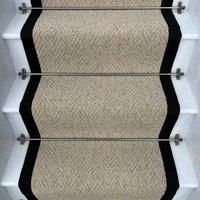 Herringbone Beige Biscotti Stair Runner With 100% Cotton Black Border Enhance your staircase with the timeless appeal of the Herringbone Beige Biscotti Stair Runner. Featuring a classic herringbone weave in a warm beige biscotti tone and finished with a striking 100% cotton black border, this runner brings both style and practicality to your home. Key Features Material: Made from premium flat-weave carpet with a 100% cotton black border for a refined and durable finish. Design: The warm beige biscotti t...