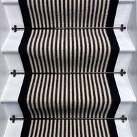 Stripe Quality Wool Stair Runner Loop Pile With 100% Cotton Black Border The Stripe Quality Wool runner features a bold stripe design in a luxurious loop pile, finished with a 100% cotton black border. It brings texture, pattern, and a modern touch to your staircase. The stripe pattern and contrasting black edge suit a wide range of interiors. Taping, whipping, and edging options are availablecontact us for custom sizes. Free delivery takes 24 days via FedEx, with next day delivery available for an extr...