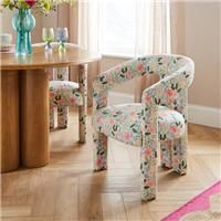 Dunelm Exclusive - Designed and Developed by Dunelm* Upholstered in flatwoven fabric* Modern style This dining chair features a Spring Garden print fabric that brings a fresh, uplifting feel to your space. The cushioned seat offers a comfortable sit, while the casual, easygoing shape makes it ideal for relaxed dining settings. With its decorative printed upholstery and simple silhouette, this chair adds both character and everyday comfort to your table. - Manufacturers part number: 31010313