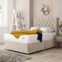 Bed Choices Windsor Divan Bed With 2 drawers, Mattress & 26" Headboard - Plush Velvet in Cream | Size: King