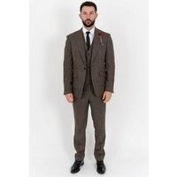 Kensington Tweed Three Piece Suit is tailored to perfection. Featuring a seamless fit blazer paired with matching Brown trousers, and a single breasted waistcoat detailing delicate checks. Finish with our complimentary pocket square for an elegant look. Perfect for your special events. Features: Slim fit Single breasted Complimentary pocket square Waistcoat adjuster straps Peak lapel Four button cuff Tweed Checked | V2 Classic Men's Kensington Tweed Three Piece Suit in Brown | Size: 46R