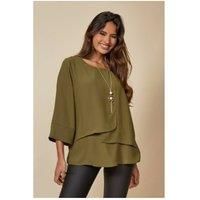 Oversized Layered Top With 3/4 Sleeves with Necklace