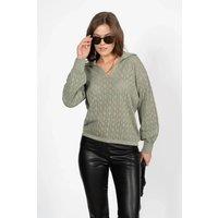 This lightweight polo neck knit sweater offers a refined balance of comfort and style. Crafted for breathability, its fine knit fabric provides gentle warmth without bulk, making it ideal for layering or standalone wear. The subtle sage shade adds a versatile, contemporary touch to any wardrobe, perfect for elevating smart-casual ensembles with expert ease. CARE INSTRUCTIONS: Check the care label for instructions. Pre-treat stains before washing. Machine wash on a gentle cycle with cold water. Use a mild detergent suitable for delicate fabrics. Avoid bleach and fabric softeners. Air dry or use a low heat setting in the dryer. Iron on a low-temperature setting if needed. Store in a cool, dry place away from sunlight. COLOR DISCLAIMER: Your screen brightness, contrast, and saturation settings will affect the image viewed on your screen. | HOXTON GAL Women's Relaxed Fit Lightweight Knit Sweater with Polo Cardigan Neck in Green | Size: Medium