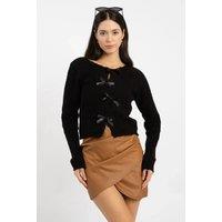This slim-fit sweater features a distinctive zigzag knit pattern that adds subtle texture and depth. Crafted for a flattering silhouette, it is complemented by an elegant bow detail that enhances its refined look. Ideal for layering or wearing on its own, this versatile piece combines comfort with expert tailoring to elevate your wardrobe essentials. CARE INSTRUCTIONS: Check the care label for instructions. Pre-treat stains before washing. Machine wash on a gentle cycle with cold water. Use a mild detergent suitable for delicate fabrics. Avoid bleach and fabric softeners. Air dry or use a low heat setting in the dryer. Iron on a low-temperature setting if needed. Store in a cool, dry place away from sunlight. COLOR DISCLAIMER: Your screen brightness, contrast, and saturation settings will affect the image viewed on your screen. | HOXTON GAL Women's Slim-Fit Zigzag Knit Sweater with Bow Detail in Black | Size: Large