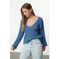 This Premium Viscose Crew Neck Cropped Stretch Knit Blouse combines superior fabric quality with expert tailoring. Made from high-grade viscose, it delivers breathable comfort and a soft handfeel, while the stretch knit design ensures excellent fit retention. Its cropped cut and classic crew neck offer a modern, versatile piece suitable for both casual and refined wardrobes. CARE INSTRUCTIONS: Check the care label for instructions. Pre-treat stains before washing. Machine wash on a gentle cycle with cold water. Use a mild detergent suitable for delicate fabrics. Avoid bleach and fabric softeners. Air dry or use a low heat setting in the dryer. Iron on a low-temperature setting if needed. Store in a cool, dry place away from sunlight. COLOR DISCLAIMER: Your screen brightness, contrast, and saturation settings will affect the image viewed on your screen. | HOXTON GAL Women's Regular Fit Wool Blend V-Neck Ribbed Knit Sweater in Blue | Size: Large