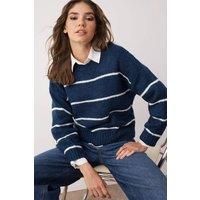 Crafted for both comfort and style, this Wrap Knit Sweater features a soft, breathable fabric that provides warmth without bulk. Its versatile wrap design allows for an adjustable fit, enhancing flattering silhouette options. Ideal for layering, this sweater combines practicality with elegance, making it a refined choice for a polished, expert wardrobe. CARE INSTRUCTIONS: Check the care label for instructions. Pre-treat stains before washing. Machine wash on a gentle cycle with cold water. Use a mild detergent suitable for delicate fabrics. Avoid bleach and fabric softeners. Air dry or use a low heat setting in the dryer. Iron on a low-temperature setting if needed. Store in a cool, dry place away from sunlight. COLOR DISCLAIMER: Your screen brightness, contrast, and saturation settings will affect the image viewed on your screen. | HOXTON GAL Women's Oversized Crew Neck Knit Sweater in Navy | Size: Large