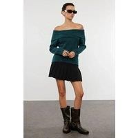 HOXTON GAL Women's Regular Fit Off-Shoulder Ribbed Knit Sweater in Green | Size: Medium