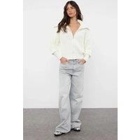 HOXTON GAL Women's Oversized Half-Zip High Neck Knit Sweater in White | Size: XS