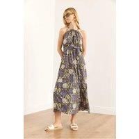 This halter neck belted midi dress is crafted from 100% viscose, offering a lightweight and breathable feel for comfortable all-day wear. Its flattering silhouette, cinched at the waist with a belt, enhances your figure while the midi length provides elegant versatility. Ideal for both casual outings and refined occasions, this dress combines stylish design with natural fabric benefits. CARE INSTRUCTIONS: Check the care label for instructions. Pre-treat stains before washing. Machine wash on a gentle cycle with cold water. Use a mild detergent suitable for delicate fabrics. Avoid bleach and fabric softeners. Air dry or use a low heat setting in the dryer. Iron on a low-temperature setting if needed. Store in a cool, dry place away from sunlight. COLOR DISCLAIMER: Your screen brightness, contrast, and saturation settings will affect the image viewed on your screen. | HOXTON GAL Women's Regular Fit Halter Neck Belted Midi Dress in Khaki | Size: XL