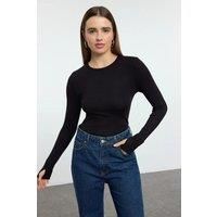 Crafted from soft, stretchable viscose knit, this blouse combines comfort with sophisticated design. The thumbhole detail enhances functionality and adds a contemporary touch, ensuring a secure fit and ease of wear. Ideal for layering or as a standalone piece, it offers breathable wearability and a flattering silhouette for versatile styling. CARE INSTRUCTIONS: Check the care label for instructions. Pre-treat stains before washing. Machine wash on a gentle cycle with cold water. Use a mild detergent suitable for delicate fabrics. Avoid bleach and fabric softeners. Air dry or use a low heat setting in the dryer. Iron on a low-temperature setting if needed. Store in a cool, dry place away from sunlight. COLOR DISCLAIMER: Your screen brightness, contrast, and saturation settings will affect the image viewed on your screen. | HOXTON GAL Women's Viscose Long Sleeve Knit Top with Thumbhole Detail in Black | Size: Small