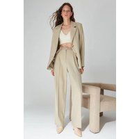 These Straight-Cut Pleated Woven Trousers deliver a refined silhouette with their tailored straight-leg design and subtle pleating for added structure. Crafted from woven fabric, they offer durability while maintaining a polished appearance suitable for professional and sophisticated casual settings. Ideal for creating a clean, streamlined look, these trousers combine comfort with timeless style. CARE INSTRUCTIONS: Check the care label for instructions. Pre-treat stains before washing. Machine wash on a gentle cycle with cold water. Use a mild detergent suitable for delicate fabrics. Avoid bleach and fabric softeners. Air dry or use a low heat setting in the dryer. Iron on a low-temperature setting if needed. Store in a cool, dry place away from sunlight. COLOR DISCLAIMER: Your screen brightness, contrast, and saturation settings will affect the image viewed on your screen. | HOXTON GAL Women's High-Waist Pleated Straight-Leg Woven Trousers in Medium Beige | Size: 8 - Manufacturers part number: HOXTON GAL_5056859558198