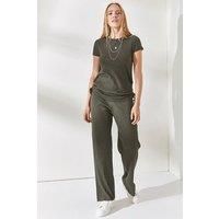 Ribbed Two-Piece Set with Side-Ruched Top and Wide-Leg Pants