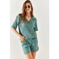 Elevate your casual wardrobe with this expertly crafted 2-piece set featuring a polo collar top and ribbed pocket shorts. Made from rich cotton, the outfit offers breathable comfort and durability for everyday wear. The polo collar adds a classic, polished touch, while the ribbed pockets on the shorts enhance functionality without compromising style. Perfect for effortless, refined leisurewear. CARE INSTRUCTIONS: Check the care label for instructions. Pre-treat stains before washing. Machine wash on a gentle cycle with cold water. Use a mild detergent suitable for delicate fabrics. Avoid bleach and fabric softeners. Air dry or use a low heat setting in the dryer. Iron on a low-temperature setting if needed. Store in a cool, dry place away from sunlight. COLOR DISCLAIMER: Your screen brightness, contrast, and saturation settings will affect the image viewed on your screen. | HOXTON GAL Women's Regular Fit Ribbed 2-Piece Set with Polo Top & Pocket Shorts in Mint | Size: Small - Manufacturers part number: HOXTON GAL_5056859559683