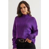 Designed for both comfort and style, this High-Neck Cable Knit Sweater is made from 100% acrylic, providing durability and resistance to wear. The intricate cable knit pattern paired with a structured high neckline delivers sophisticated warmth and a refined silhouette. Ideal for layering, this sweater combines expert craftsmanship with practical materials, ensuring a long-lasting and polished addition to any wardrobe. | HOXTON GAL Women's High-Neck Cable Knit Regular Fit Jumper in Purple | Size: Small