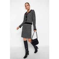 This 2-piece knit set features a textured cardigan with gold-tone button fastening paired with a matching pencil skirt. Crafted from a soft acrylic-blend knit, it offers a balance of lightweight warmth and structured elegance. The cardigans tailored silhouette and the skirts fitted cut create a coordinated look thats both polished and comfortable. The woven texture adds visual depth, while the stretch knit ensures flexibility and ease of movement. Perfect for smart occasions or sophisticated daywear, th...