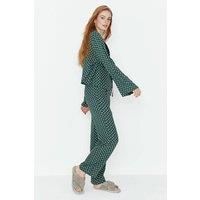 WOVCOR Women's 2-Piece Heart Print Viscose Woven Pajama Set with Tie Detail in Green | Size: 14