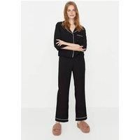 This 2-piece pajama set features a button-up shirt with a classic collared neckline and a relaxed silhouette, paired with matching full-length trousers. Crafted from soft, breathable viscose fabric, the set provides a smooth and lightweight feel for ultimate comfort. The fluid drape of the woven material adds an elegant touch, while the elastic waistband ensures a flexible and comfortable fit. Perfect for both lounging and sleeping, this coordinated set combines timeless simplicity, sophistication, and ...