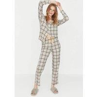 This 2-piece pajama set features a button-up long-sleeve shirt paired with matching full-length argyle print trousers. Crafted from 100% cotton knit fabric, the set offers natural breathability, lightweight warmth, and a soft touch for ultimate comfort. The argyle pattern adds a classic yet modern twist, bringing visual charm to your loungewear collection. Designed with a relaxed silhouette and an elastic waistband for easy wear, this coordinated ensemble combines timeless style, comfort, and versatilit...