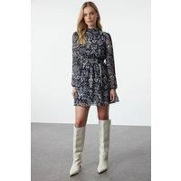 WOVCOR Women's Chiffon Mini Woven Dress with Belted Flounce Skirt in Navy | Size: 14