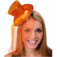 Mini Orange Glitter Fascinator Top Hat: For The Occasions Where You Should Be Looking Extra Fancy, Or For An Added Bit Of Fun And Flare To Your Look, Make Sure You re Wearing Our Mini Orange Glitter Fascinator Top Hat To Your Upcoming Events! Fascinator Hat Details: A Brilliant Hat With A Lot Of Intricate Details, From The Glitter Decorating The Hat, The Orange Ribbon Adding The Extra Flash To The Top, Followed By A Gorgeous Orange Net To Veil Your Face, It All Comes Together Nicely! Available In Multip...