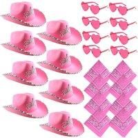 Set Includes: This Set Includes 8x Pink Cowgirl Hats With Silver Tiara Detailing On The Front, 8x Pink Plastic Heart Shaped Glasses, And 8x Pink Bandanas With Traditional Paisley Pattern, The Perfect Way To Finish Off Your Outfit! One Size Fits Most: The Pink Tiara Cowgirl Hats Are The Perfect Size For Most To Wear With A Suitable Head Size Of 58Cm (23"), And An Adjustable String To Wear Comfortably All Night Long! Bandana Measurements: Your Pink Paisley Bandanas Are A Great Sized Accessory To Add To Y...
