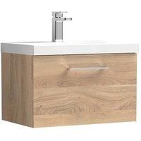 Featuring a soft-close drawer and a durable mid-edge vitreous china basin pre-drilled with 1 tap hole, this vanity provides practical storage while preventing clutter. Compact yet roomy, it is ideal for space-saving installations and effortless bathroom maintenance. | Balterley Bathroom Wall Hung 1 Soft Close Drawer Vanity Unit, Bleached, 600mm in Brown