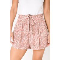Get Summer-ready with these super breezy printed pair shorts. Crafted from lightweight fabric and designed with relaxed fit in mind, these eye catching high waist pants are easy to wear and comfortable, while creating a flattering silhouette. This winning combination makes them the perfect choice for everyday fashion. | KRISP Women's Tie Belted Waist White Flower Print Shorts in Pink | Size: Small - Manufacturers part number: KRISP_5057061453295
