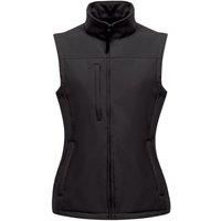 96% Polyester, 4% Elastane. Fabric: Softshell, Woven. Design: Plain. Fabric Technology: Isoflex, Water Repellent, Wind Resistant. Lightweight, Quick Dry, Shockcord Hem, Stretch. Sleeve-Type: Sleeveless. Neckline: Standing Collar, Zip Neck. Fit: Shaped. Pockets: Zip, 1 Chest Pocket, 2 Lower Pockets. Fastening: Full Zip. | Regatta Professional Women's Softshell Body Warmer in True Black | Size: 14