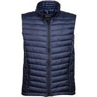 Water repellent. Breathable. Inner pocket. Quality zippers. Inside zipper for dration. Shaped fit. Shaped fit. Size (1/2 Chest (cm)): S - 54, M - 57, L - 60, XL - 63, 2XL - 68, 3XL - 71. 100% Polyester 300T with 100% Polyester padding and lining. | TEE JAYS Men's Padded Zepelin Vest Jacket Gilet in Mid Navy | Size: XL