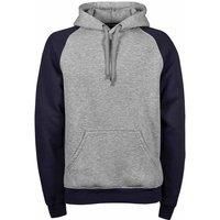 Lycra for better stability and stretch. 2 large front pockets. Brushed inside. Double stitched. 70% Cotton, 30% Polyester. Size (1/2 Chest): S- 50cm, M- 53cm, L- 56cm, XL- 59cm, 2XL- 62cm, 3XL- 65cm. | TEE JAYS Men's Two-Tone Hooded Sweatshirt in Dark Navy | Size: 2XL