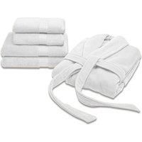 Set the standards for cosy moments with our complete Supreme towel and robe bundle. A robe and towel bundle that includes a full set of two bath towels and two hand towels, it instantly adds a consistent look to your bathroom. Our Supreme towel and robe are part of a best-selling collection, crafted with smooth and velvety cotton with a luxurious plushness.