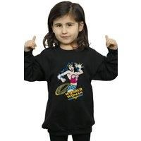 DC Comics Girl's Wonder Woman Lasso Sweatshirt in Black | Size: 7-8 Years