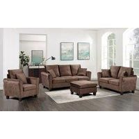 This sofa set comprises of a 3 seater sofa, 2 seater sofa and a chair. Both are upholstered in a brown brushed velvet and feature sturdy wooden legs | Comfy Living Ltd Brushed Velvet 2 Seater 3 Seater & Chair Sofa Set in Brown