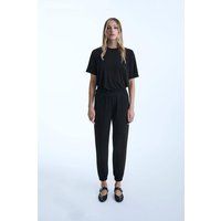 Crafted from technical jersey fabric, these full-length James Lakeland Joggers offer the perfect blend of smart and casual style. The flowy stretch trousers provide exceptional comfort, while details like the ruched elasticated waistband with belt loops, two functional side pockets, and gathered ankles create an elongating effect for the legs. Pair them seamlessly with the Jersey T-shirt and Long Jersey Cardigan to complete a chic ensemble. | James Lakeland Women's Jersey Black Trousers | Size: 8 - Manufacturers part number: James Lakeland_5057407733838