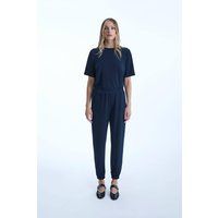 Crafted from technical jersey fabric, these full-length James Lakeland Joggers offer the perfect blend of smart and casual style. The flowy stretch trousers provide exceptional comfort, while details like the ruched elasticated waistband with belt loops, two functional side pockets, and gathered ankles create an elongating effect for the legs. Pair them seamlessly with the Jersey T-shirt and Long Jersey Cardigan to complete a chic ensemble. | James Lakeland Women's Jersey Navy Trousers | Size: 8 - Manufacturers part number: James Lakeland_5057407733906