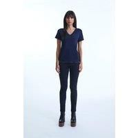 This understated yet chic James Lakeland t-shirt is thoughtfully designed in the softest natural viscose. It features elegant Lurex detailing along the V-neck, short sleeves, and hem. Slightly tailored at the waist, this supple t-shirt is a perfect addition to your wardrobe. | James Lakeland Women's V-neck Navy T-shirt | Size: 8 - Manufacturers part number: James Lakeland_5057407739632