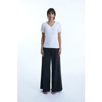 This understated yet chic James Lakeland t-shirt is thoughtfully designed in the softest natural viscose. It features elegant Lurex detailing along the V-neck, short sleeves, and hem. Slightly tailored at the waist, this supple t-shirt is a perfect addition to your wardrobe. | James Lakeland Women's V-neck White T-shirt | Size: 16 - Manufacturers part number: James Lakeland_5057407739748