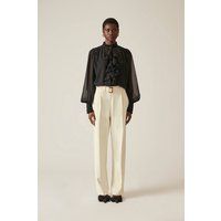 James Lakeland's high-waisted cream trousers feature a stylish buckle detail, pleated front, elasticated back, zip fastening, and a timeless straight-leg cut. With the added practicality side pockets, they seamlessly transition from professional to casual settings. | James Lakeland Women's Buckle Waist Cream Trousers | Size: 12 - Manufacturers part number: James Lakeland_5057407756103