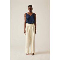 James Lakeland Button Cream Trousers are high-waisted with a wide-leg silhouette, pleated front, bold off-center button fastening, front zip closure, and practical side pockets. They pair seamlessly with the Cream Suit Vest for a perfectly tailored look, ideal for formal occasions. | James Lakeland Women's Button Cream Trousers | Size: 16 - Manufacturers part number: James Lakeland_5057407756769