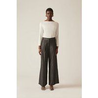 Elevate your wardrobe with our Pin Tuck Black Trousers by James Lakeland. Featuring sophisticated pin tuck detailing in front, a flattering wide-leg silhouette, side pockets, and zip and button fastening. Made from cotton, they offer both comfort and style. Perfect for both casual and formal occasions. | James Lakeland Women's Pin Tuck Black Trousers | Size: 12 - Manufacturers part number: James Lakeland_5057407756882