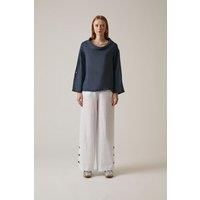 This James Lakeland Cowl Neck Linen Navy Top blends effortless elegance with a relaxed silhouette. Featuring a soft draped cowl neckline, it offers a chic yet comfortable fit. Crafted from breathable linen, it ensures ease of wear while maintaining a refined look. The long sleeves can be rolled up and secured to three-quarter length for versatile styling. Designed to pair seamlessly with Linen Button Trousers, its available in various colors for coordinated outfits. | James Lakeland Women's Cowl Neck Linen Navy Top | Size: 14 - Manufacturers part number: James Lakeland_5057407764252