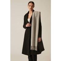 Experience comfort and elegance with the Pale Grey Pearl Detail Scarf from James Lakeland, crafted from ultra-soft viscose. This chic winter accessory is embellished with hand-applied fantasy pearls and rhinestones along the centre. Slight irregularities may occur due to artisanal stitching. | James Lakeland Women's Pale Grey Pearl Detail Scarf