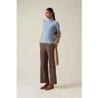 James Lakeland Pale Blue Polo Neck Jumper. Made in Italy from soft knit with a high ribbed polo neck for warmth and elegance. Features long sleeves with ribbed cuffs and subtly shaped ribbed hems for a flattering fit. A timeless piece for layering or solo wear. | James Lakeland Women's Pale Blue Polo Cardigan Neck Jumper | Size: 14 - Manufacturers part number: James Lakeland_5057407771632