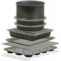 For the budding baker! The 8 piece set will help you get scrumptious results and offers long lasting performance.It comprises on a cooling rack, 2 sandwich tins, brownie pan, cupcake tin, baking sheet, Swiss roll tray and a loose base tin! Each piece is double non-stick coated for easy food release. Made in the UK and comes with a 10 year guarantee. Made in the UK and comes with a 10 year guarantee. Oven safe to 230 degrees C. Freezer and dishwasher safe. Dimensions: Cooling Rack 41 x 23.5 x 1.5 cm, 20c...