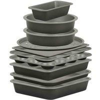 The perfect set to bake your family sized favourites! This 10 Piece Baker & Salt Non-Stick Bakeware Set is double non-stick coated for easy food release and offers long lasting performance. It comprises of a roaster, 2 baking tray, pizza tray, Yorkshire pudding tray, Swiss roll tray, cupcake tin, loaf tin, 2 deep sandwich tins, Made in the UK and comes with a 10 year guarantee. Oven safe to 230 degrees C. Freezer and dishwasher safe. Dimensions: 36cm Roaster 35.5 x 28 x 6 cm, 36cm Oven Tray 35.5 x 28 x ...