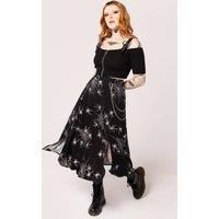 Hell Bunny Women's Grungy Spider Viscose Printed Midi Skirt in Black | Size: 2XL