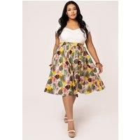 Hell Bunny Women's Benita 50's Style Floral Midi Skirt in Beige | Size: 4XL