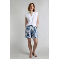 Our new Aloha Linen Rich Printed Shorts are a fun and smart option for Summer, made from a comfortable and breathable fabric, they will help you stay cool during the warmer months. Choose from two exclusive all-over prints, and enjoy the comfortable and flattering wide-leg design. Designed with an elasticated back and smooth front waistline, plus deep hand pockets. | Weird Fish Women's Aloha Linen Rich Printed Shorts in Blue | Size: 8 - Manufacturers part numbers: Weird Fish_5057636947297|2033998EstateBlu